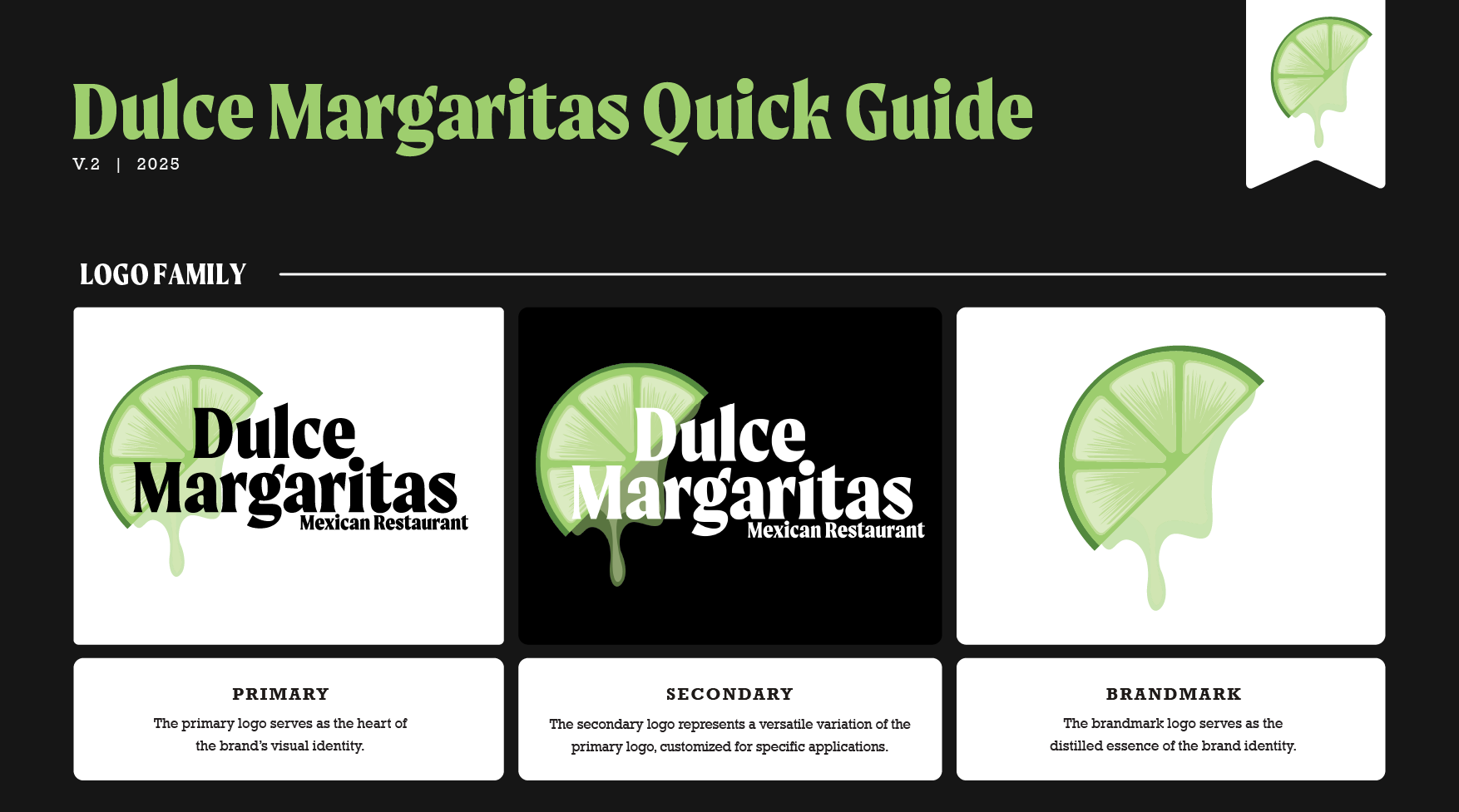 The goal was a more modern and recognizable design highlighting a dripping lime, alluding to the 'sweet margaritas' and the use of lime juice in Mexican cuisine.