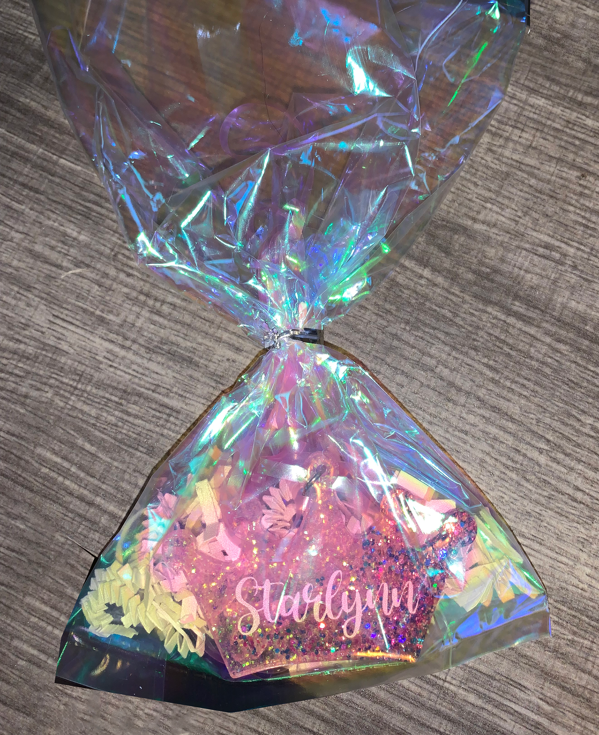 First project commissioned was handmade resin keychains with each participants name in vinyl.